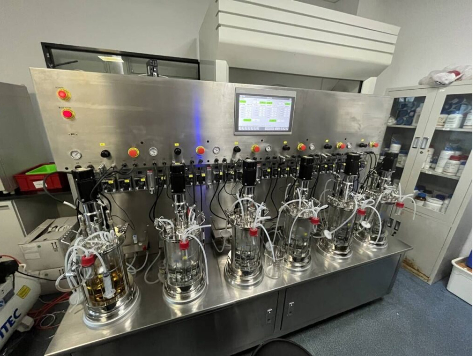 Control parameters10 or 15 inch touch screen , Siemens PLC with control parameters (stirring, pH, DO, temperature, feeding, alarm, gas etc.), data analysis, data record, data output, language(RU/EN/CN) and other customized functions
