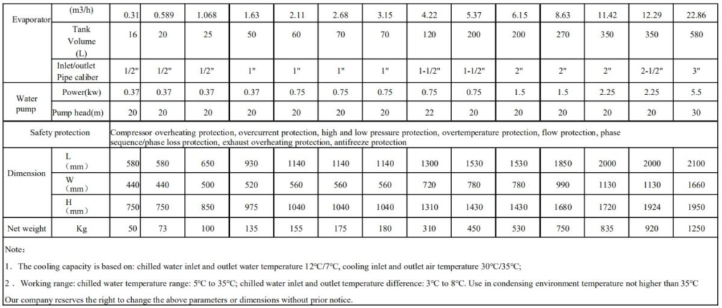 Chiller Technical Parameters: